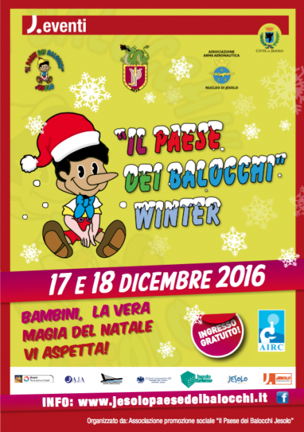 Animazione, gioco, intrattenimento e…solidarietà Sabato 17 e domenica 18 dicembre 2016 la Città di Jesolo ospita la 1^ edizione del Paese dei Balocchi Winter, la manifestazione a scopo benefico dedicata ai bambini. I fondi raccolti saranno devoluti all’A.I.R.C. – Associazione Italiana Ricerca sul Cancro, per sostenere la ricerca sui tumori infantili. Sabato 17 dicembre, in … Continue reading IL PAESE DEI BALOCCHI WINTER – 17-18 DICEMBRE A JESOLO!